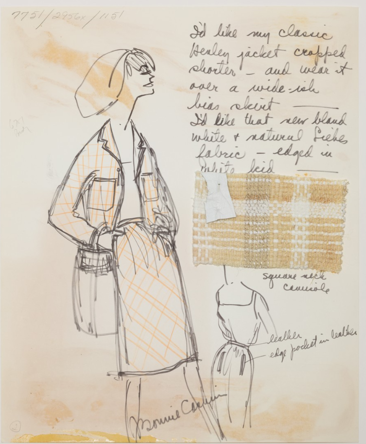 Bonnie Cashin, Sketch With Swatch by Dorothy Liebes, Design for a Creme Woolen Suit, 1965; Fashion Institute of Technology; SUNY, FIT Library Special Collections and College Archives.